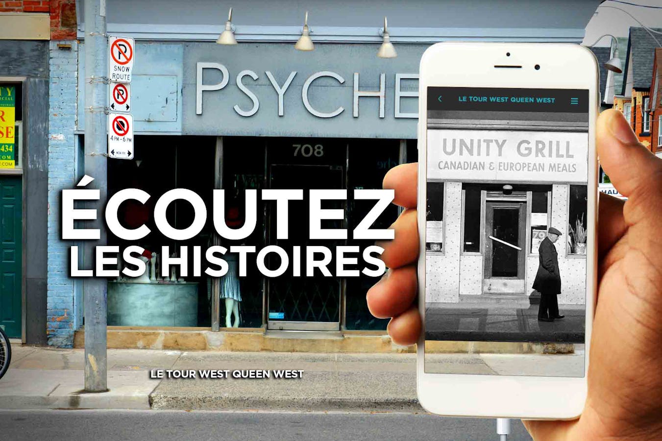Le tour offre plus de 15 histoires captivantes, plus de 90 photos documentant le paysage et les sites du quartier pendant des décennies, ainsi que des images de référence historiques des Archives de Toronto et de la Bibliothèque publique de Toronto.